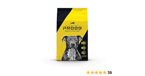 This formula offers pork and ancient grains. Diamond Pro89 contains a minimum of 30 percent protein and 20 percent fat to meet your active dogs energy needs and maintain lean muscle. Pro 89 Adult Dog Food is packed with protein and fortified with amino acids from energy-dense sources.